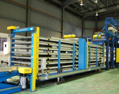 Aluminum Pad --> Assembling Conveyor --> Transportation Conveyor --> Multi-Layer Vertical Hot Press